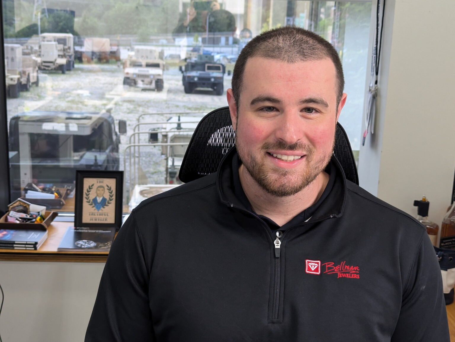 “Hey guys, so I’m going to show you this unbelievable three-stone engagement ring we just created that has three radiant cut diamonds,” says Bellman, chief operating officer of his family’s namesake Manchester store Bellman Jewelers.