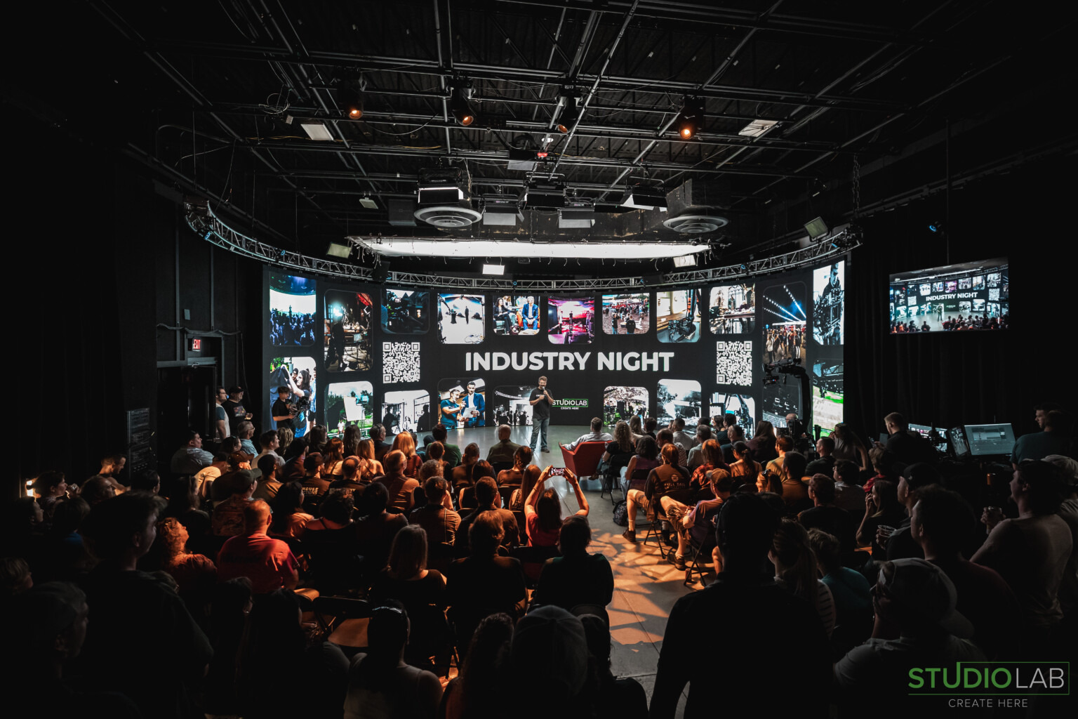 An audience of film scene professionals and others listens as Tim Messina speaks at one of Studio Lab’s Industry Night socials. (Courtesy Pat Dunn/Studio Lab)